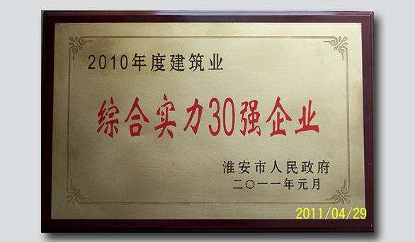• 先鋒鋼結(jié)構(gòu)榮獲2010年度淮安市綜合實(shí)力30強(qiáng)企業(yè)