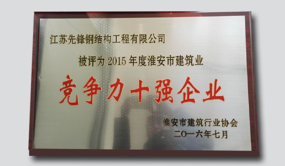 • 先鋒鋼結(jié)構(gòu)榮獲2016年競爭力十強(qiáng)企業(yè)