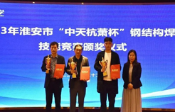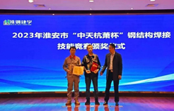 市市場(chǎng)監(jiān)督管理局特設(shè)處謝展處長(zhǎng)宣讀了關(guān)于2023年淮安市“中天杭蕭杯”鋼結(jié)構(gòu)焊接技能競(jìng)賽獲獎(jiǎng)情況的決定,大會(huì)進(jìn)行了頒獎(jiǎng)儀式。